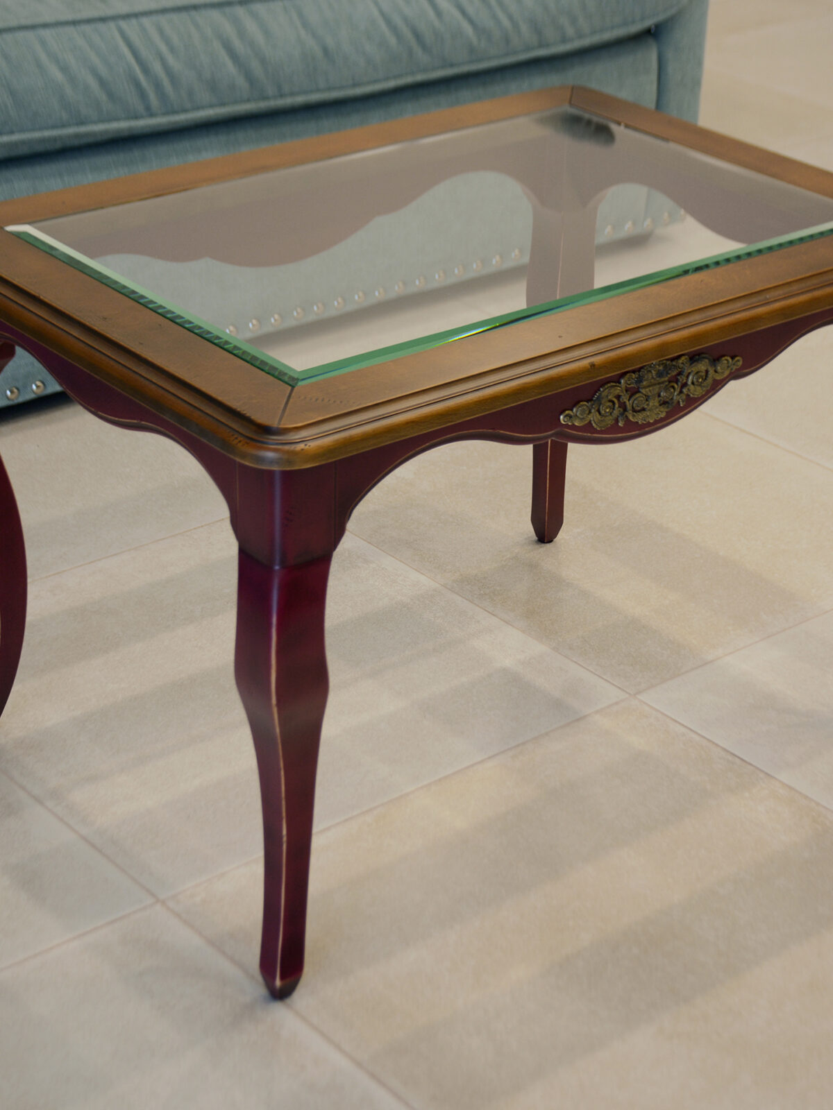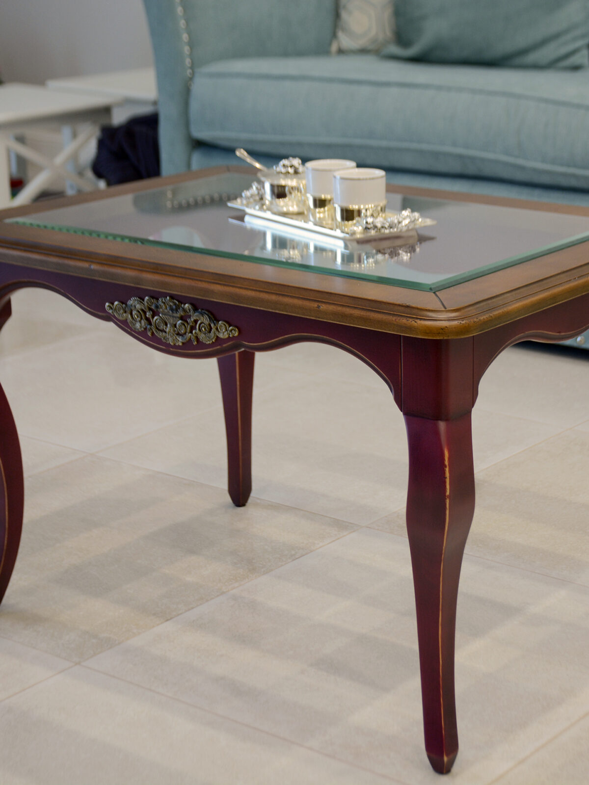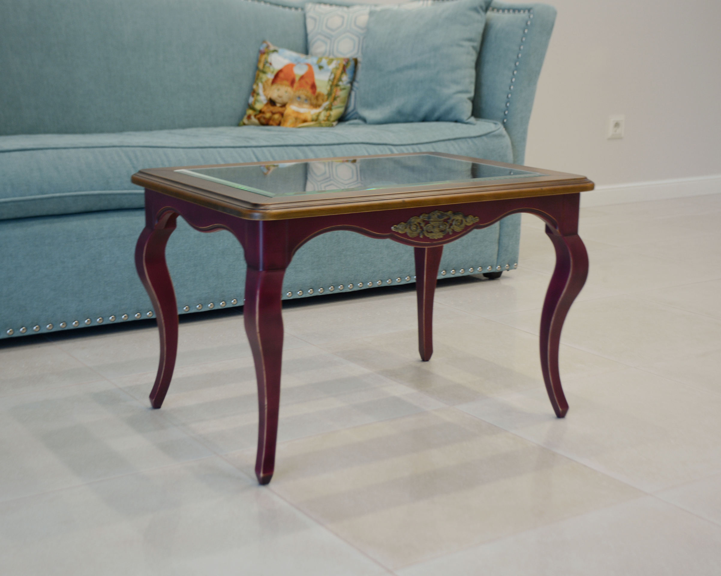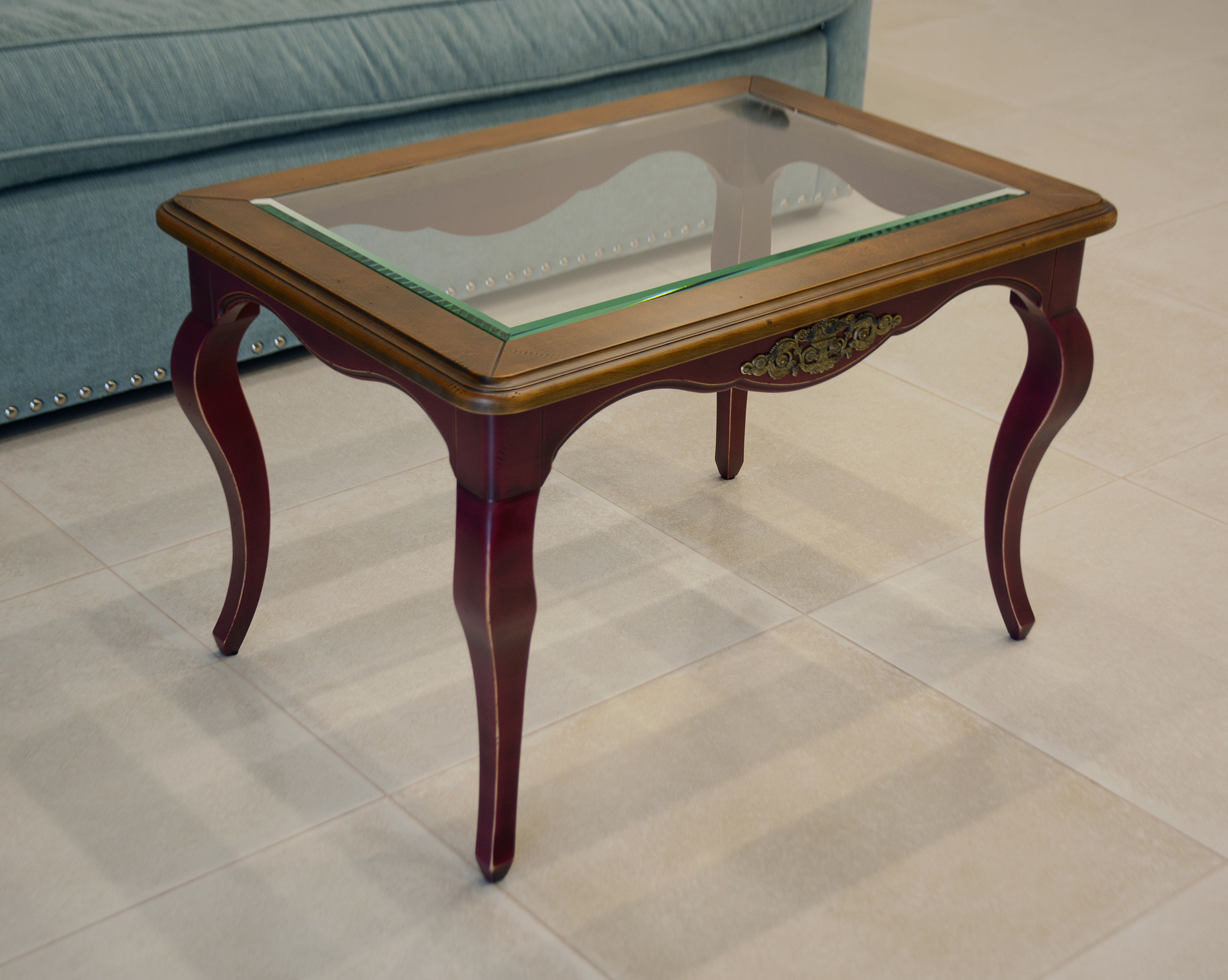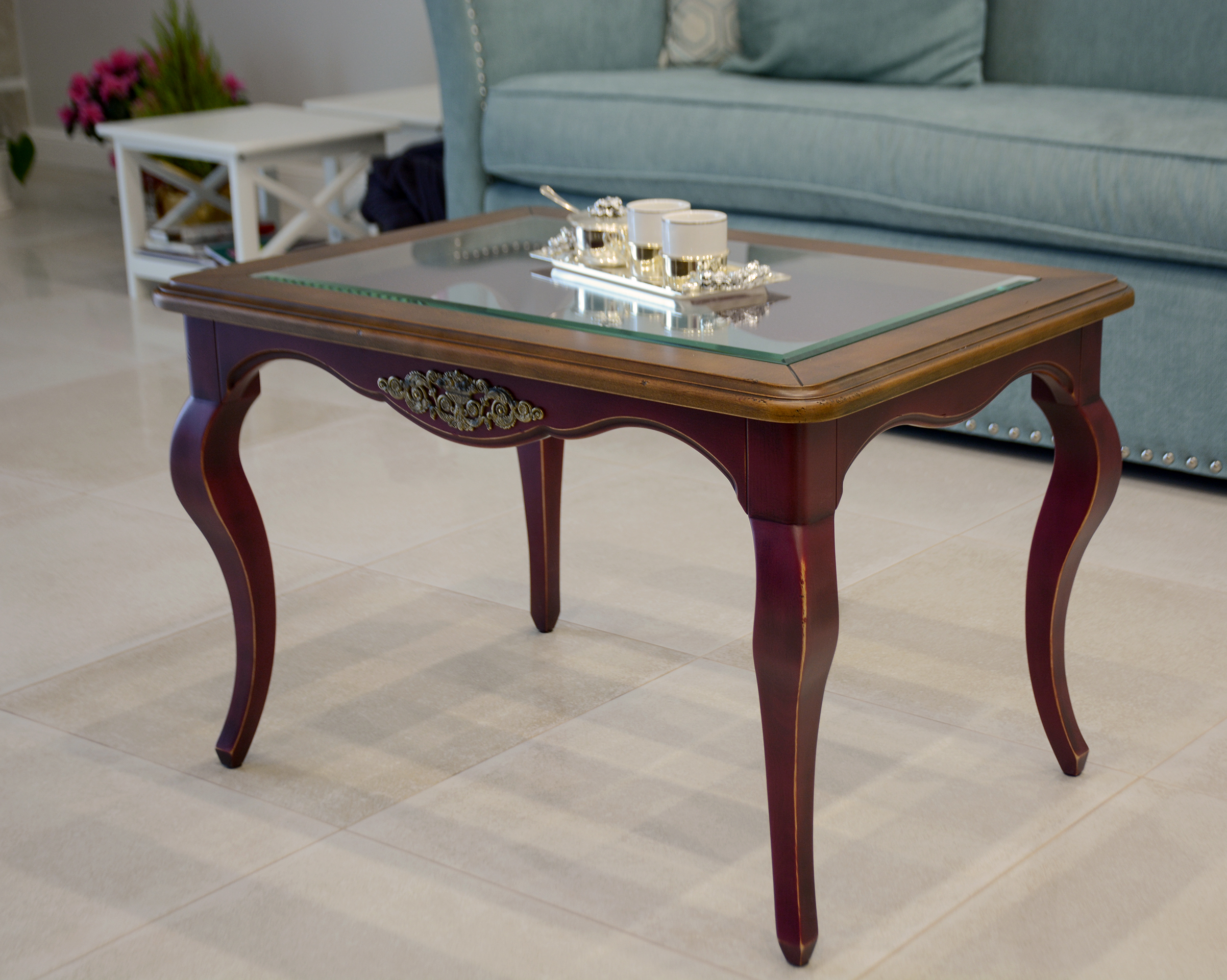 Журнальный стол со стеклянным вкладышем в столешнице