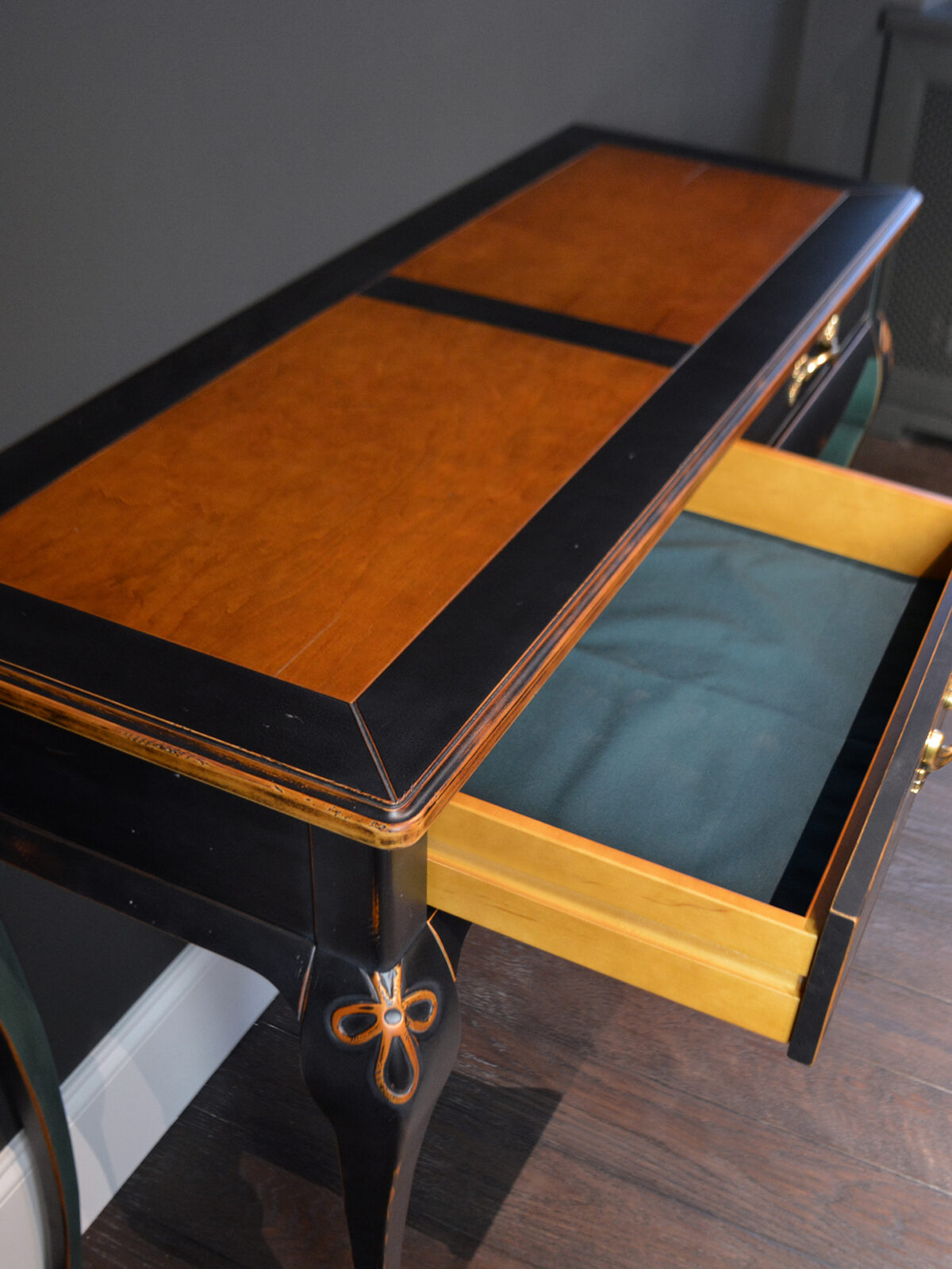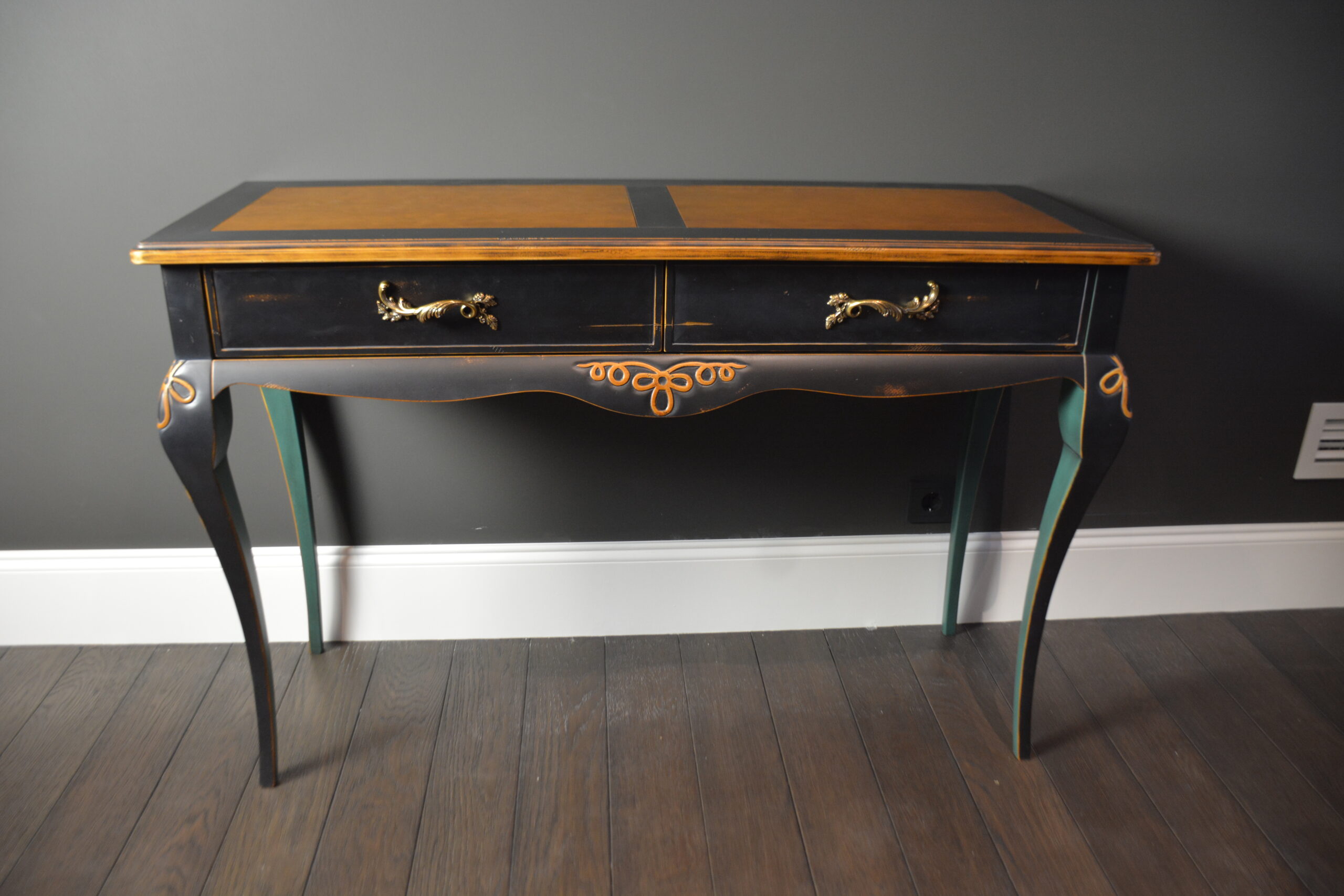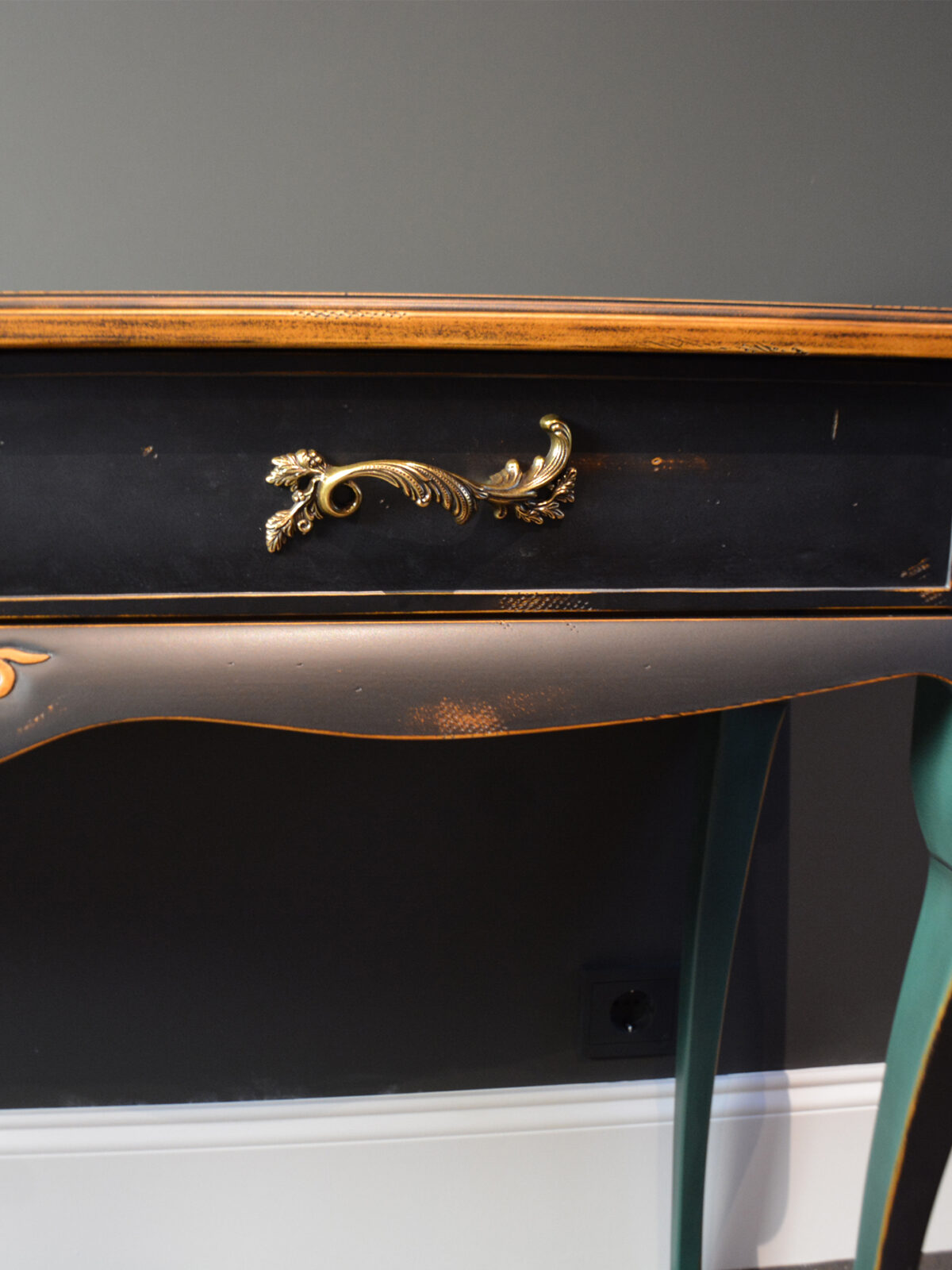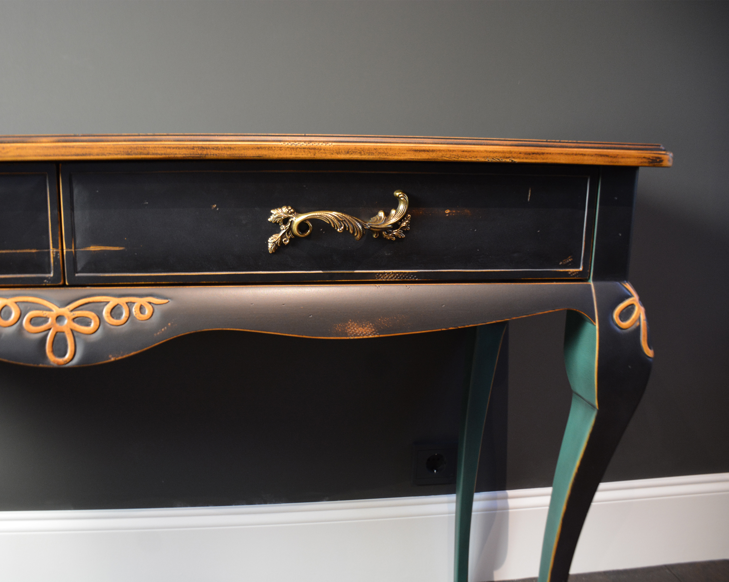 Изогнутые ножки, резные декоративные детали, фасады с эффектом мягкой подушки… И многоэтапная отделка: сначала старим древесину и различными способами имитируем “налет времени”. Затем все детали тонируем, красим, покрываем несколькими оттенками патины, создаем потёртости… И, конечно, каждый этап закрепляется лаком.