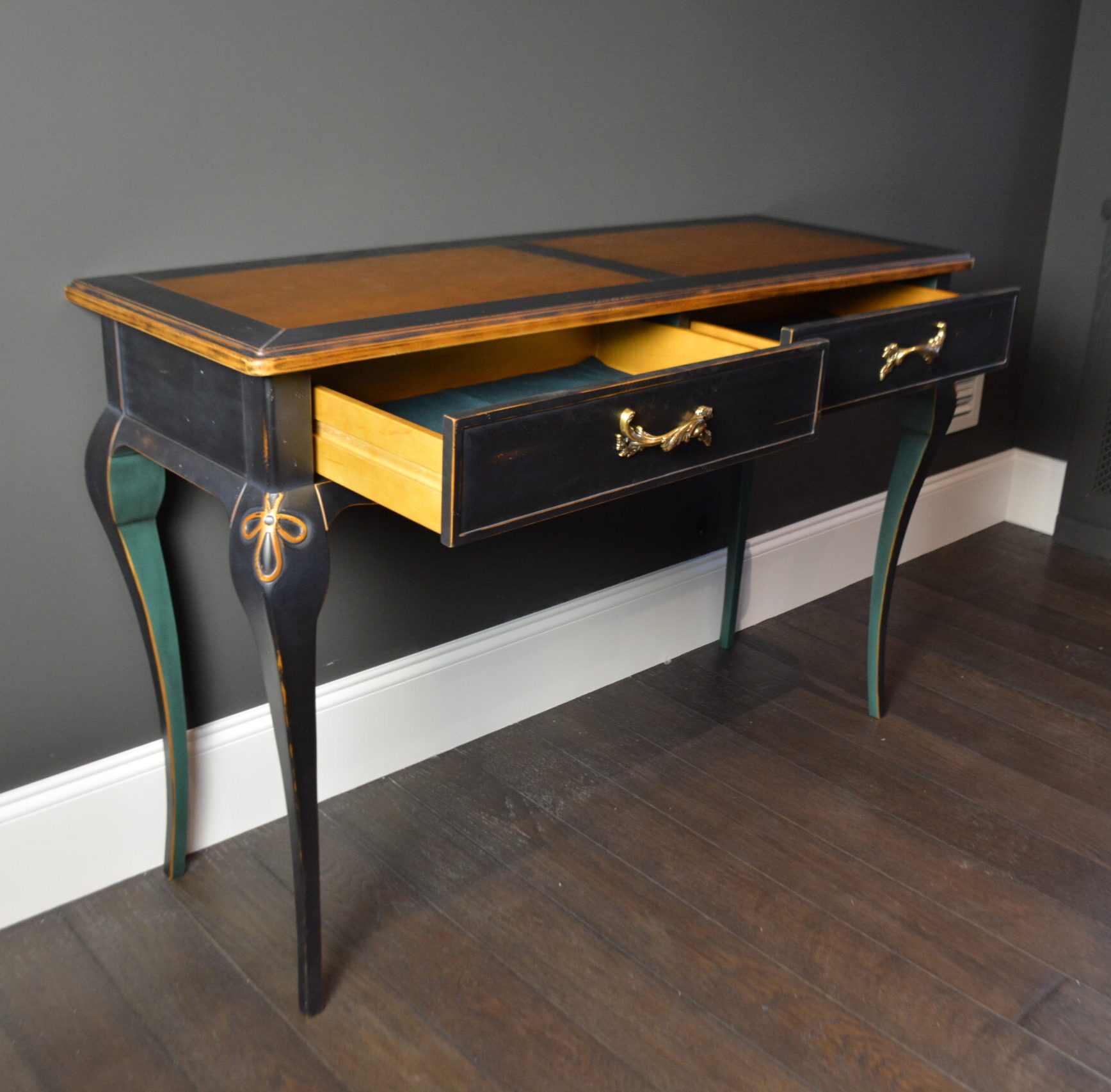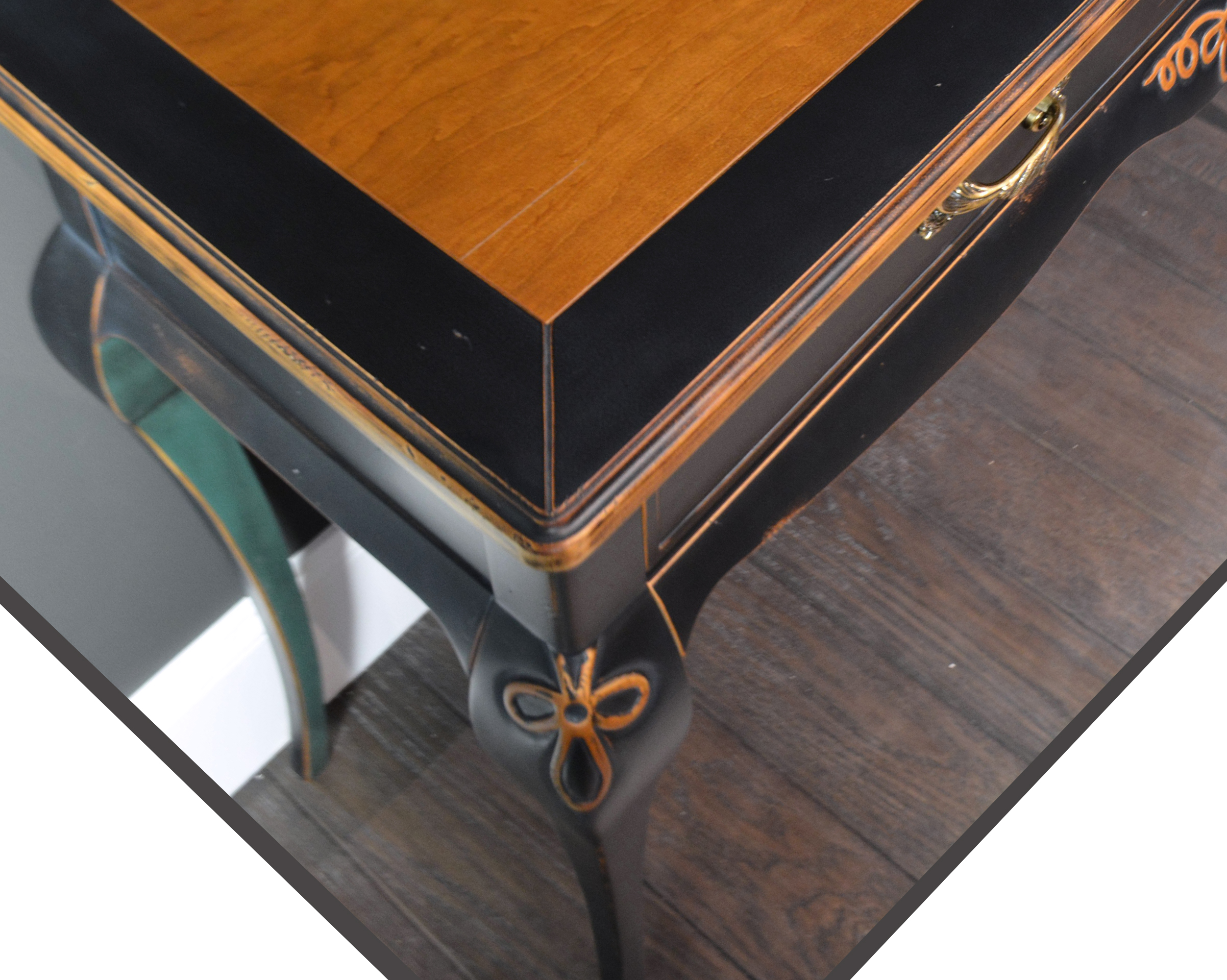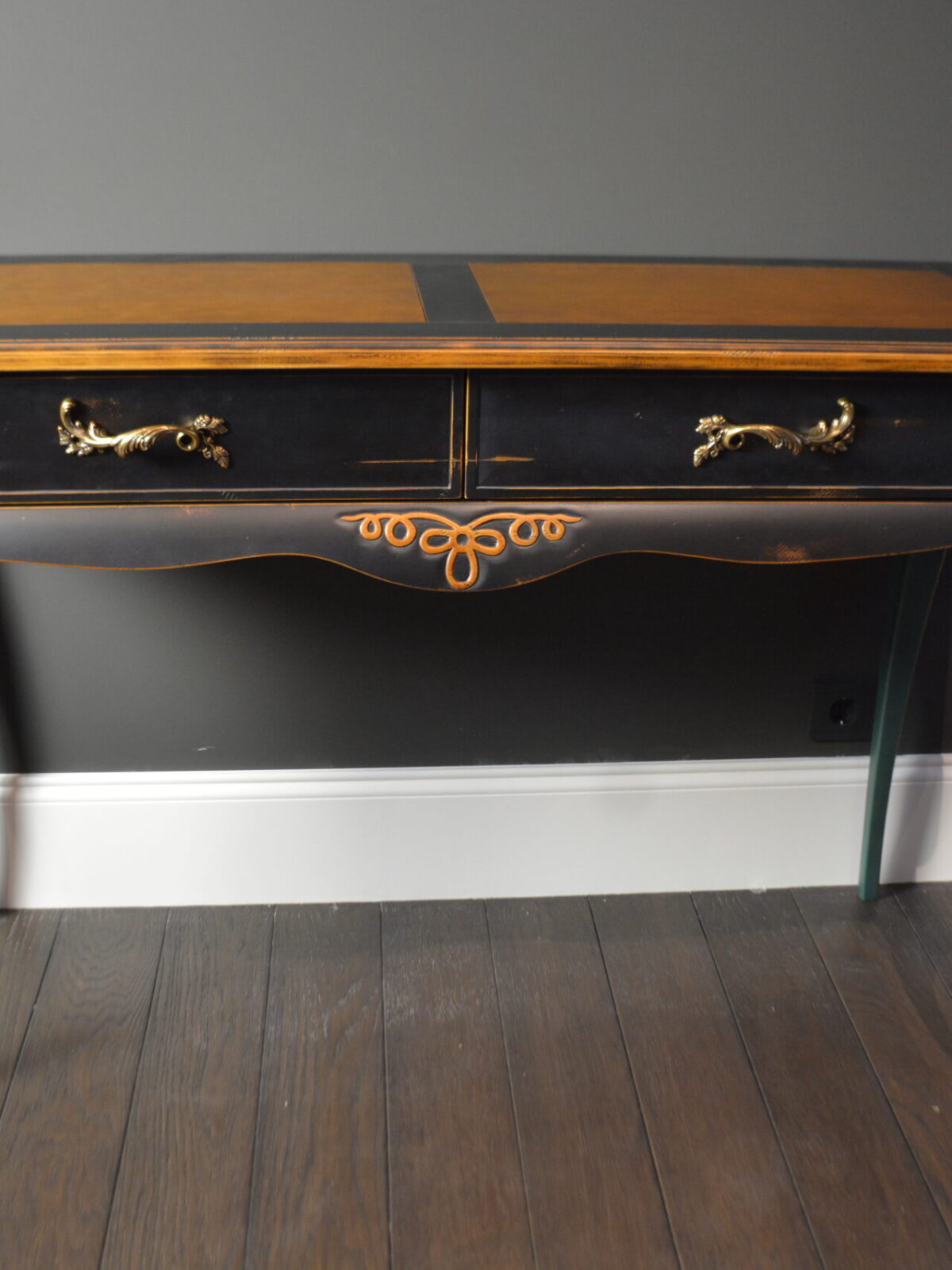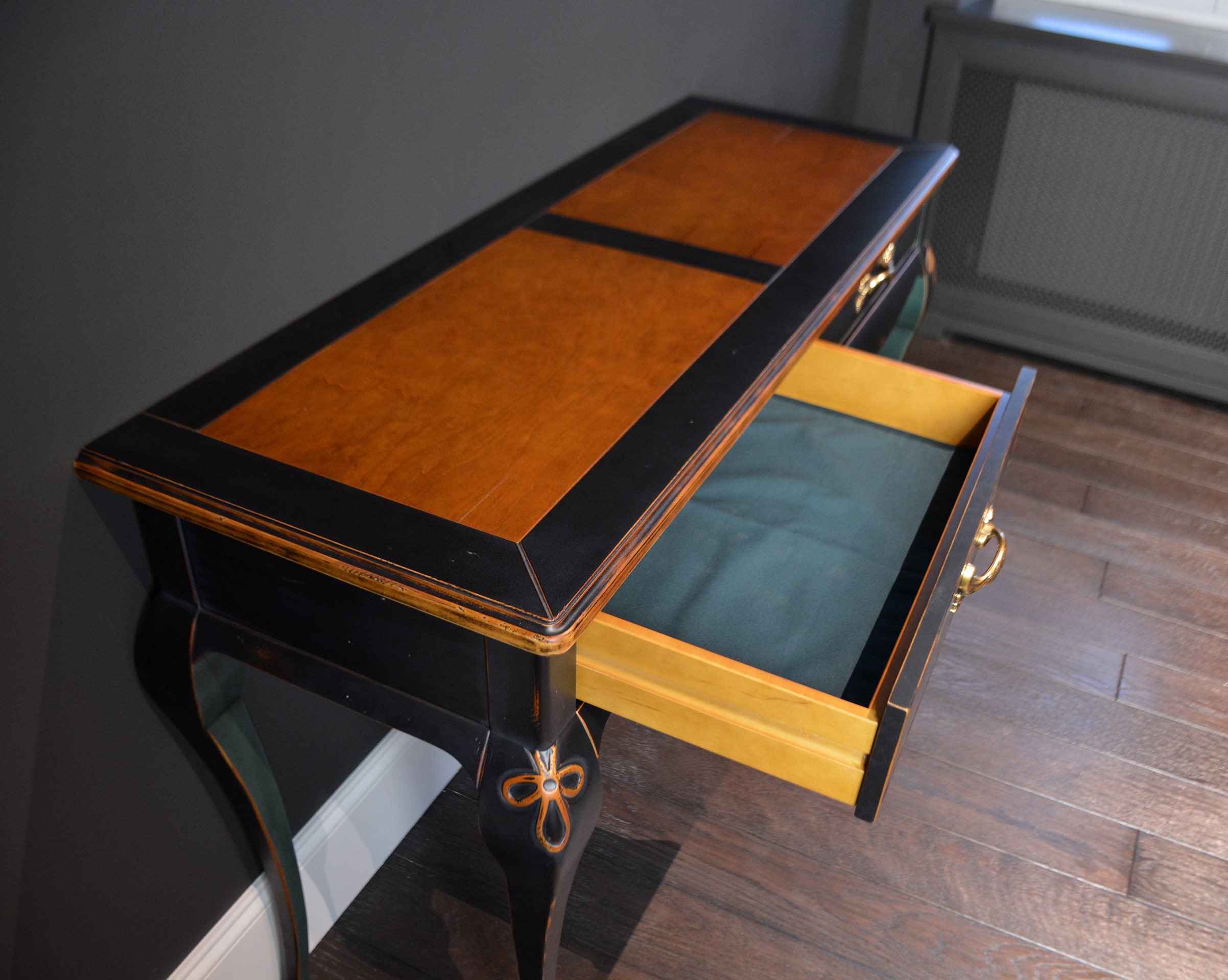 Изогнутые ножки, резные декоративные детали, фасады с эффектом мягкой подушки… И многоэтапная отделка: сначала старим древесину и различными способами имитируем “налет времени”. Затем все детали тонируем, красим, покрываем несколькими оттенками патины, создаем потёртости… И, конечно, каждый этап закрепляется лаком.