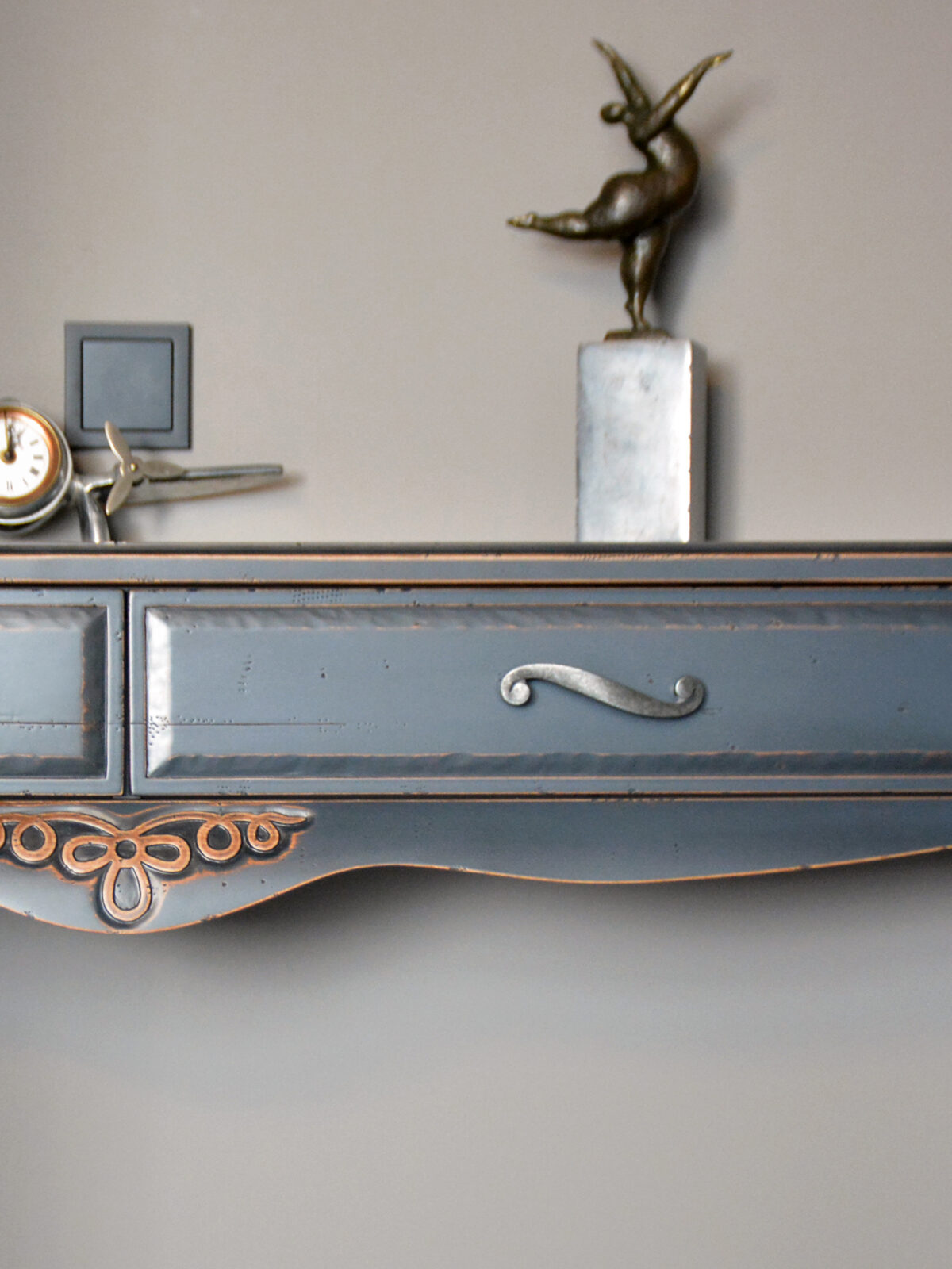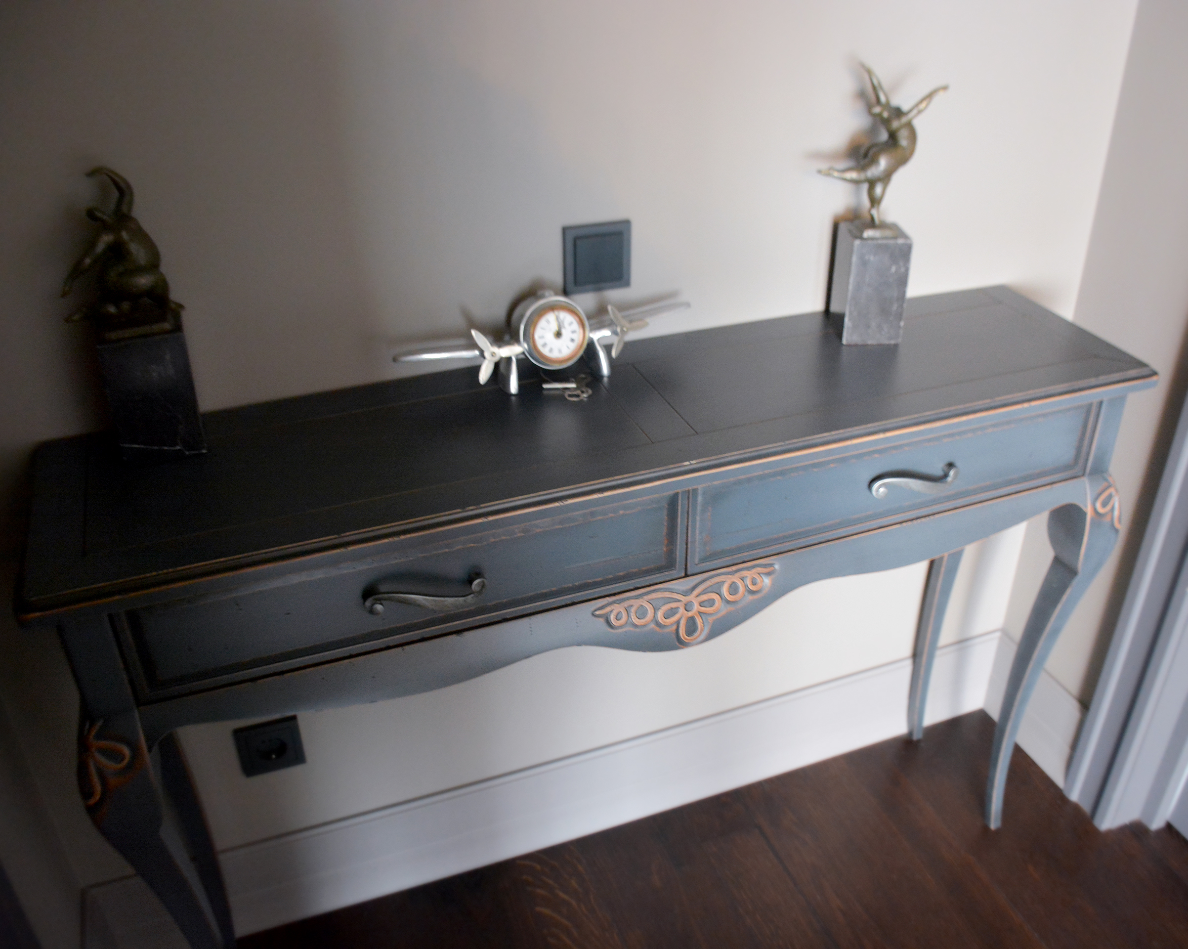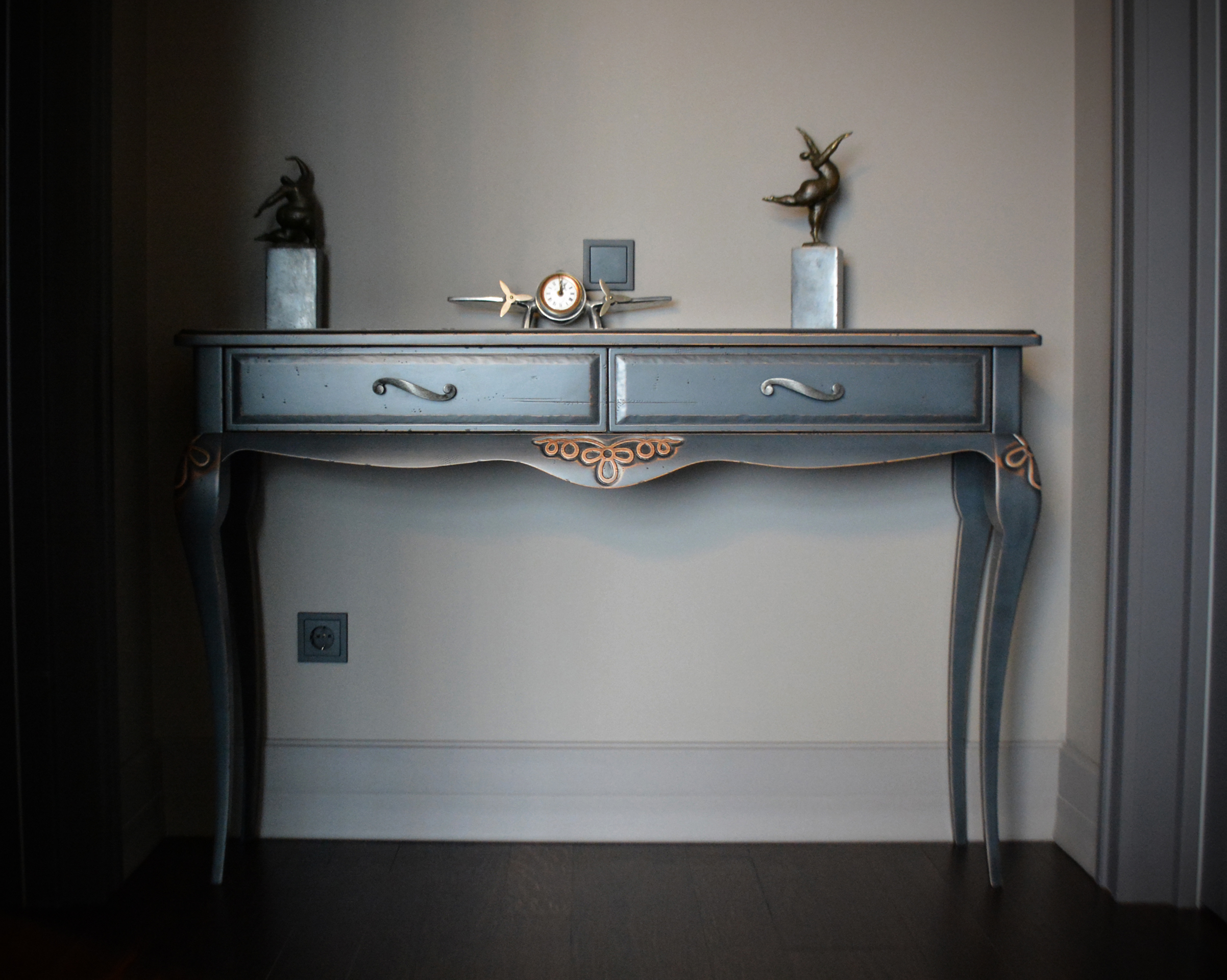 А самое интересное, что в зависимости от отделки, степени старения, цветовых решений и фурнитуры, такая консоль органично вписывается как в изысканную неоклассику, так и в смелую эклектику или рустикальный интерьер.