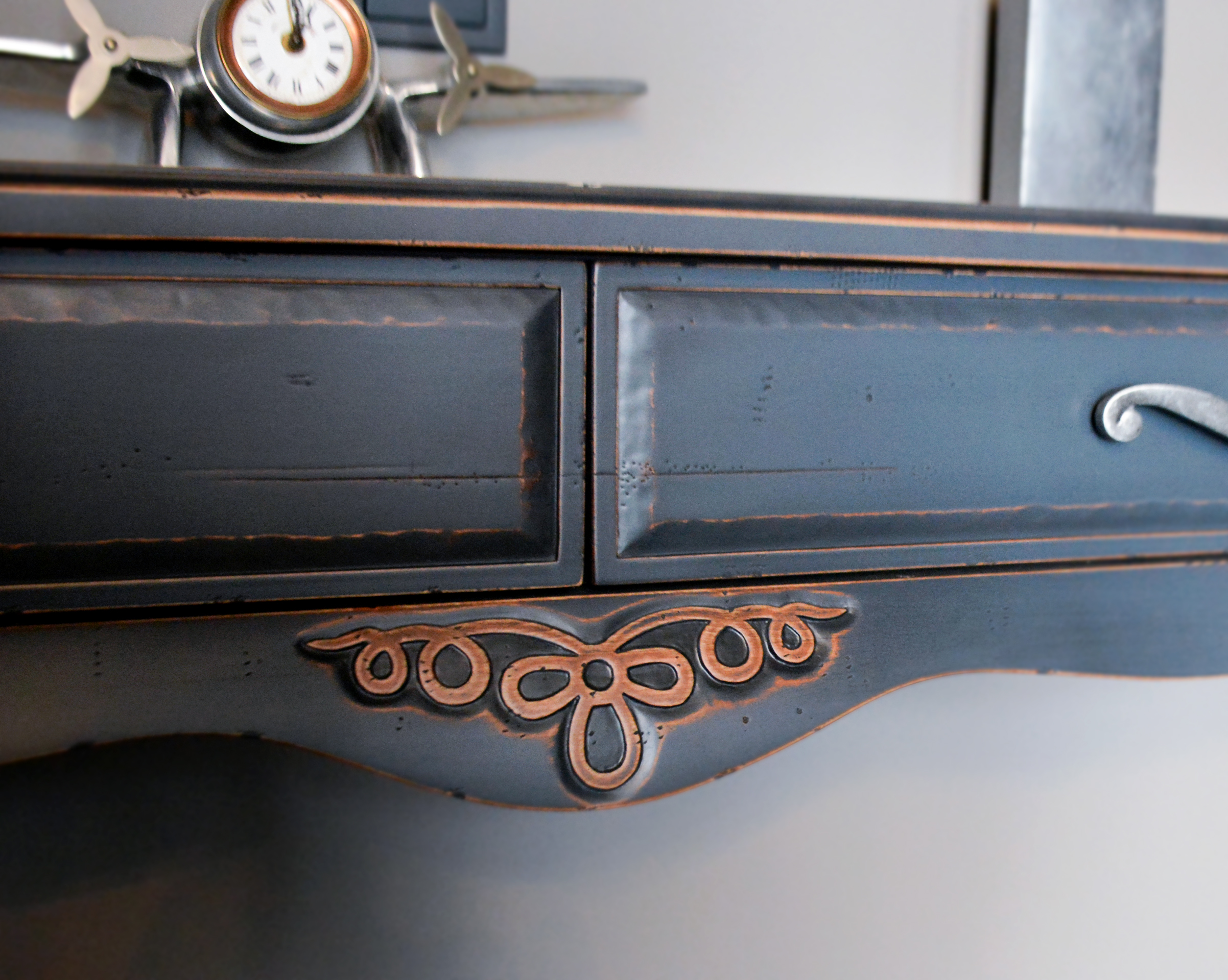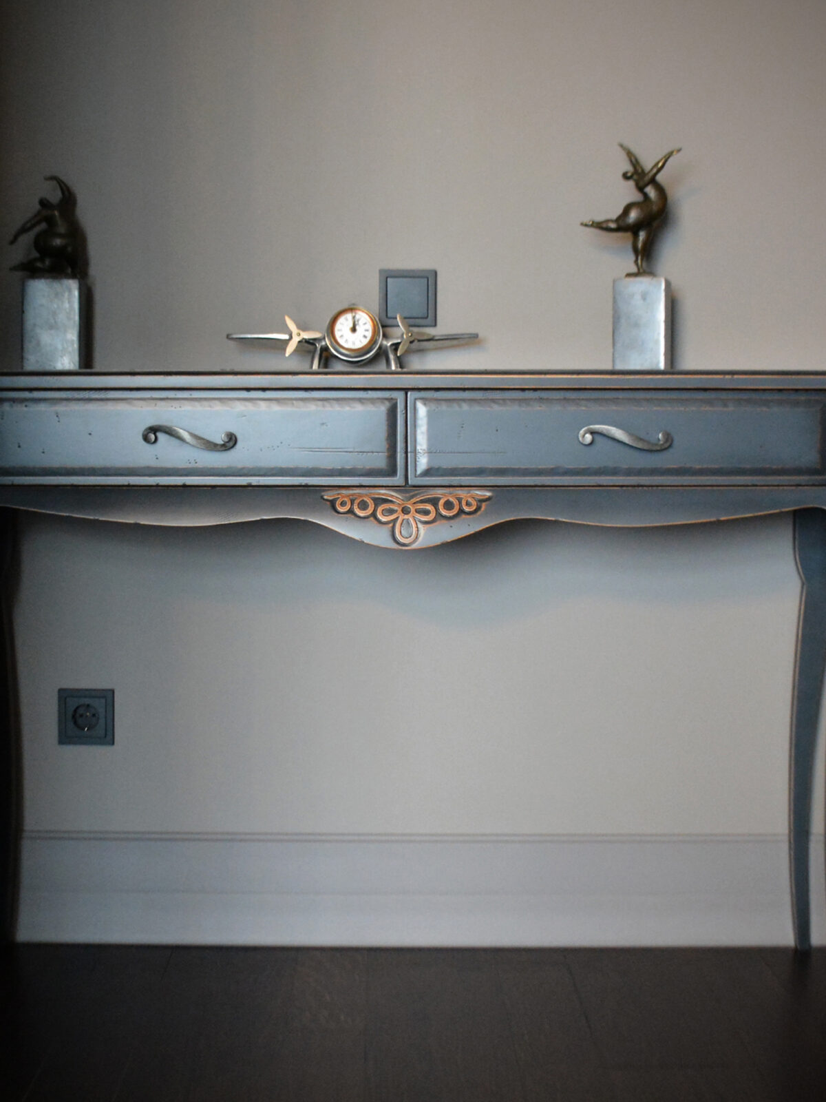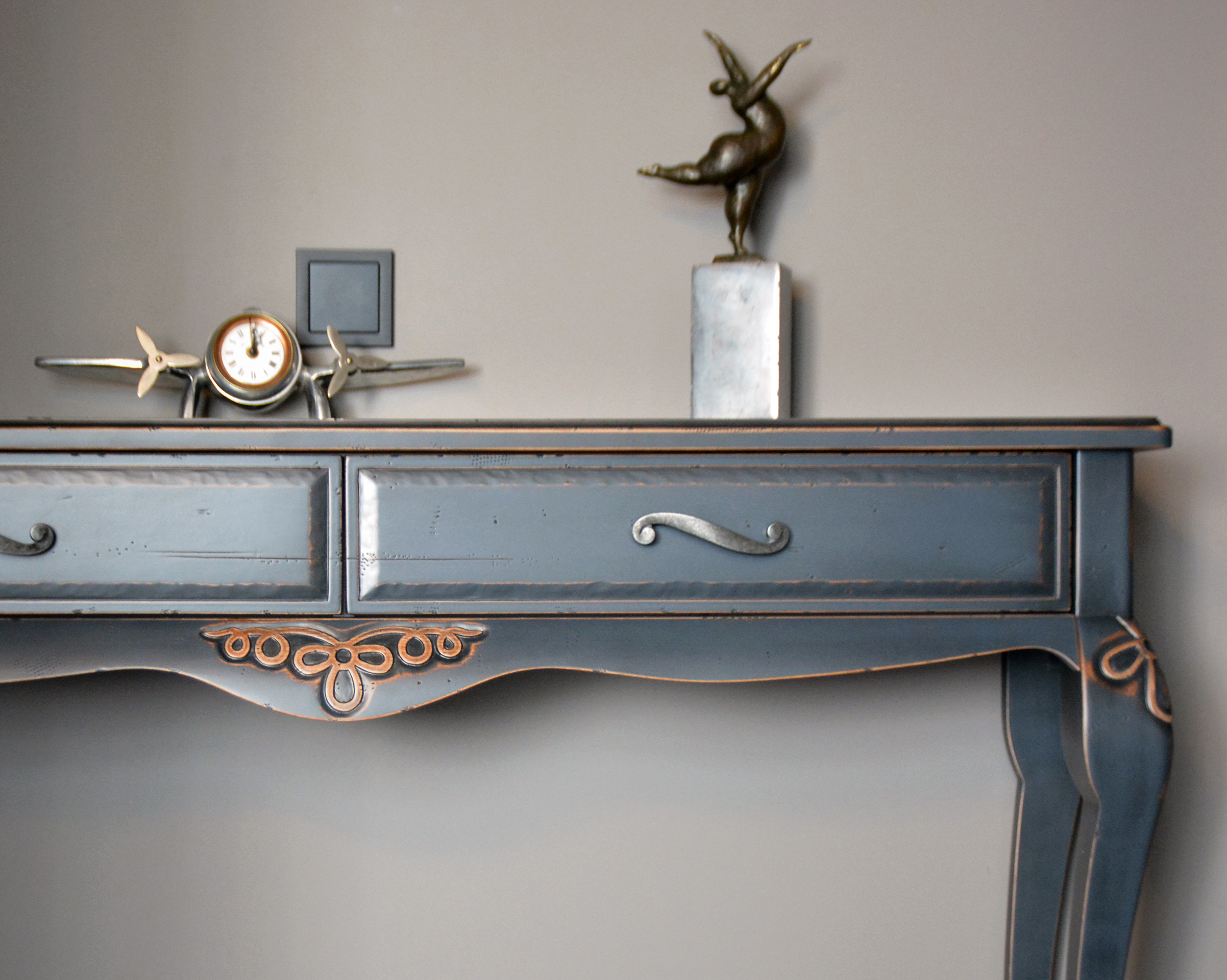 А самое интересное, что в зависимости от отделки, степени старения, цветовых решений и фурнитуры, такая консоль органично вписывается как в изысканную неоклассику, так и в смелую эклектику или рустикальный интерьер.
