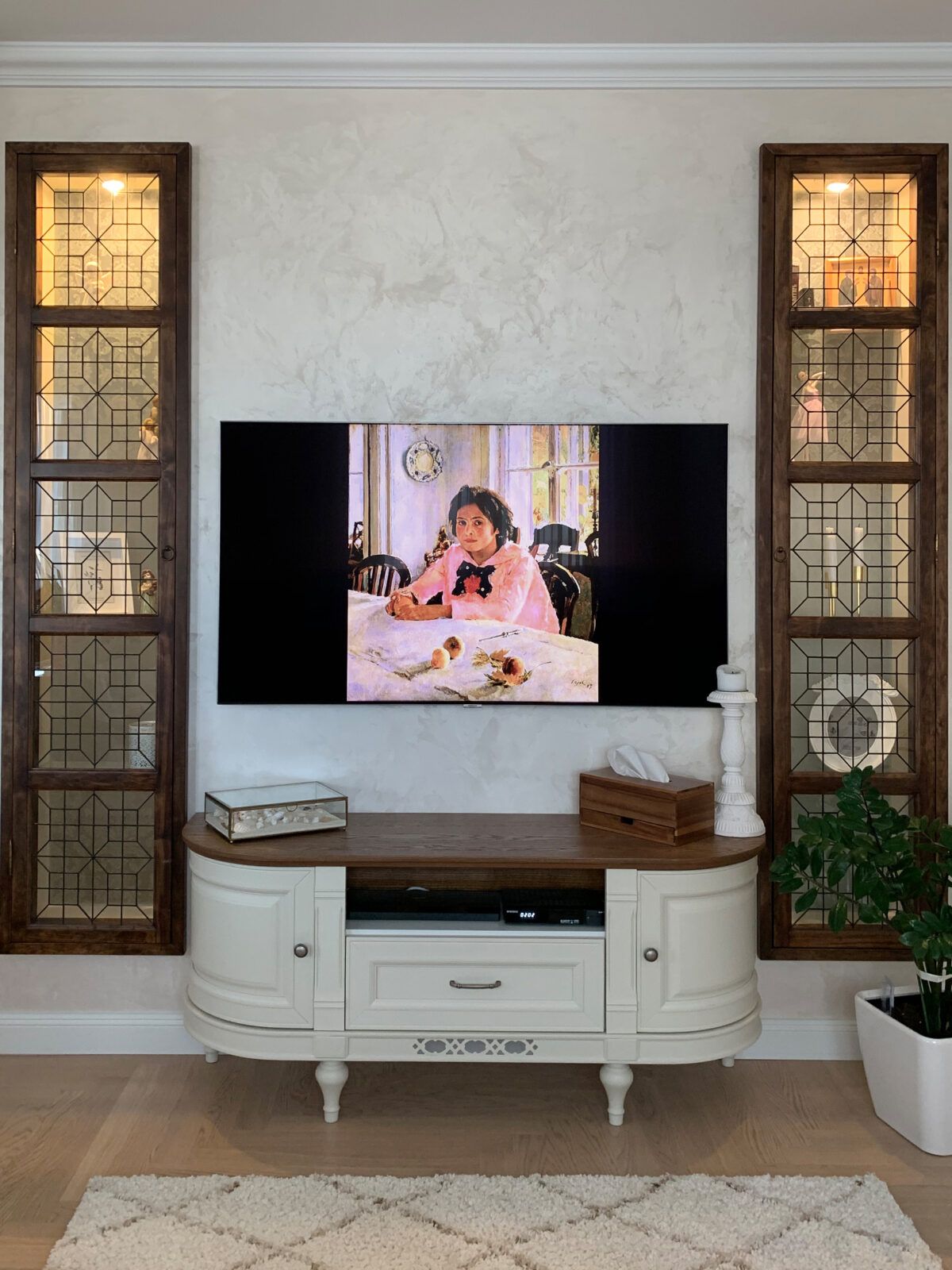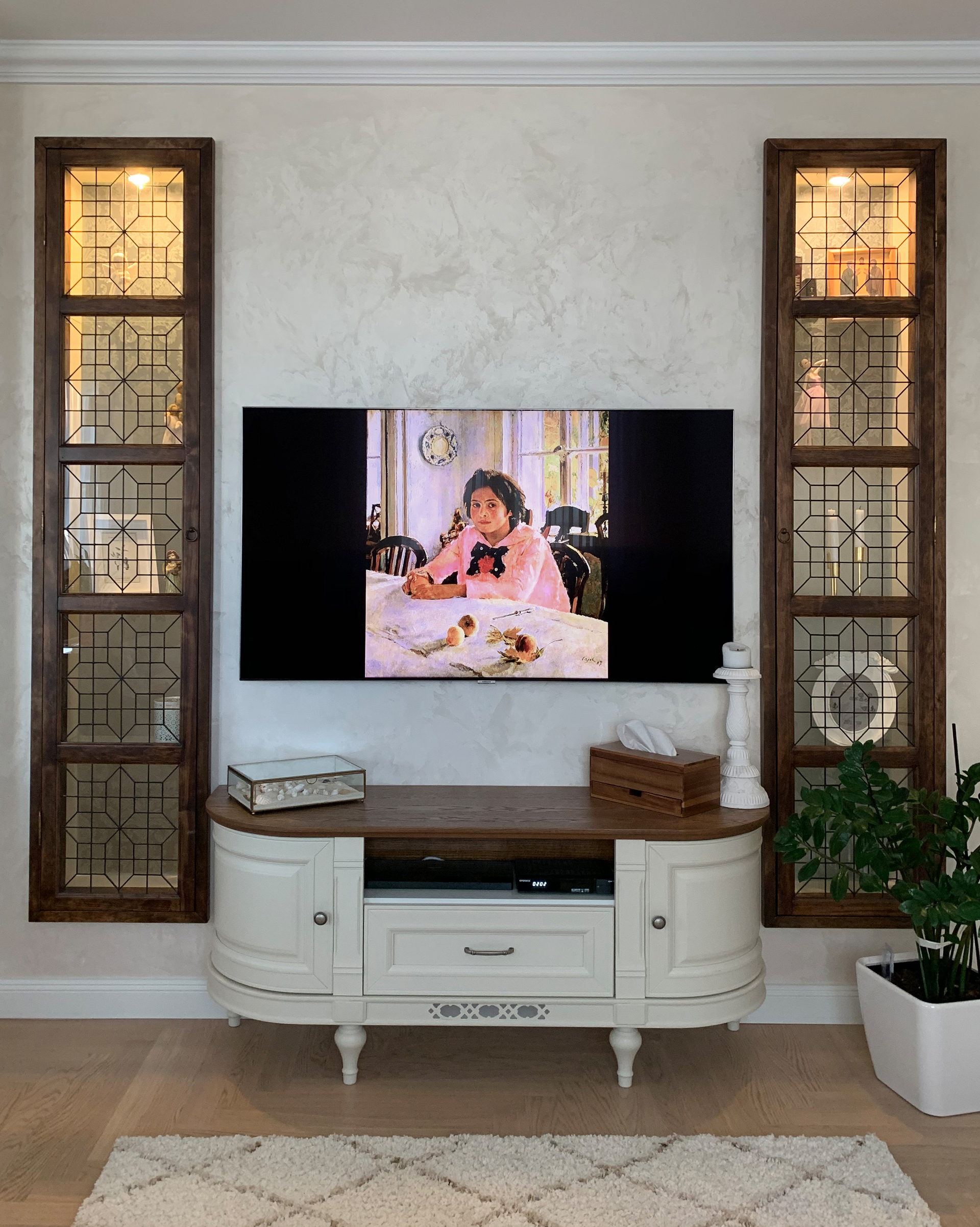 Витраж – это еще одна возможность сделать мебель более уникальной за счёт введения рисунка, фактуры стекла или его цвета.